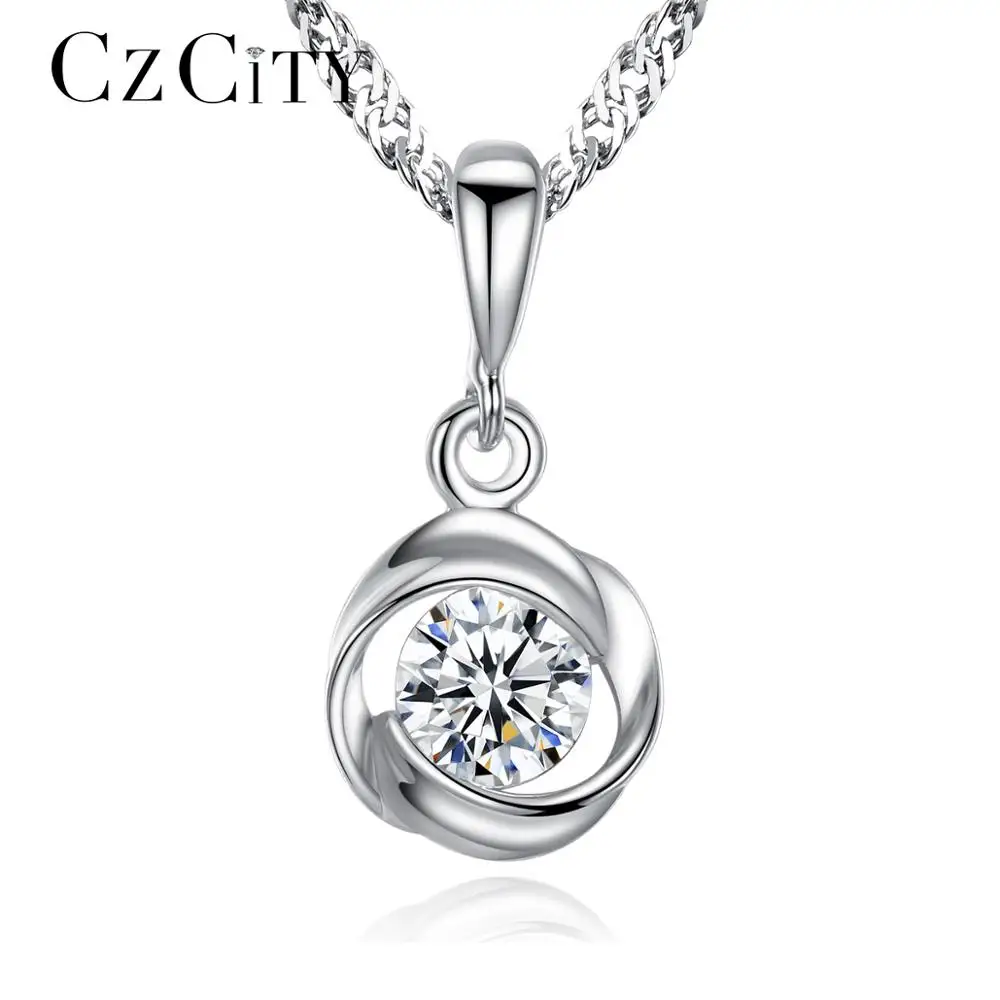 CZCITY Classic 1 Carat Clear Cubic Zirconia Delicate Round Pendant with Italy Box Chain Women Necklace New 2018 Fine Jewelry,CZCITY Brand Cute Stud Earrings for Women Simple Rose Flower CZ Stone Genuine 925 Sterling Silver Jewelry Earring Wholesale, CZCITY Brand Cute Stud Earrings for Women Simple Rose Flower CZ Stone Genuine 925 Sterling Silver Jewelry Earring Wholesale