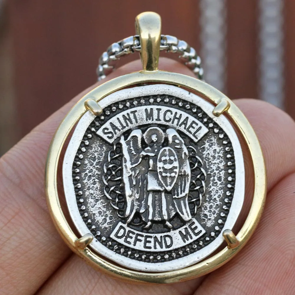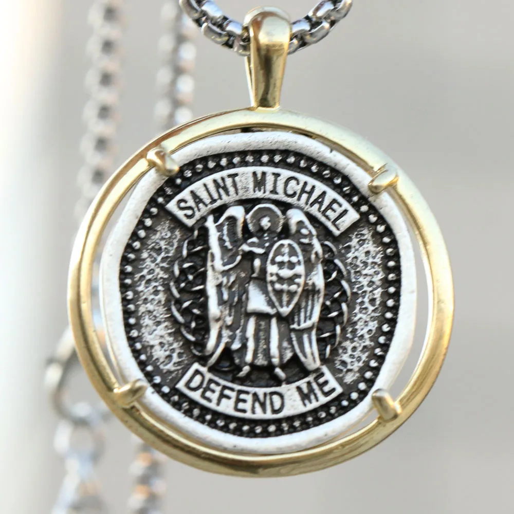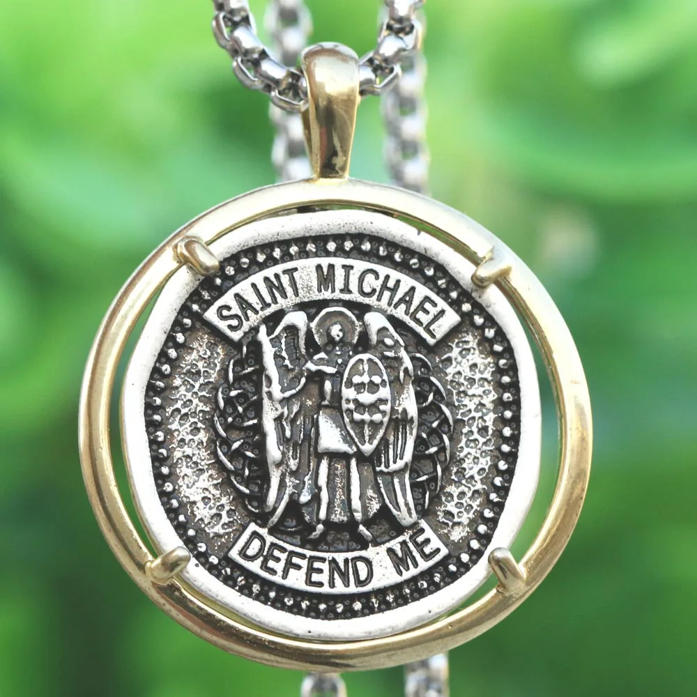 Promo Catholic Saint Michael Necklace Retro Medal Archangel Patron Protect Me Pendant Russian Orthodox Ne